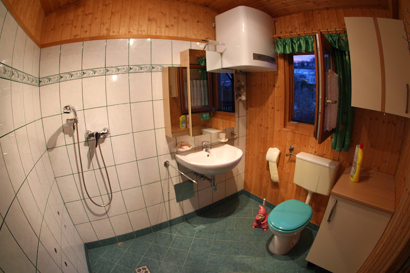 Die Hütte selbst ist voll ausgestattet mit Küche, Dusche und WC. Es gibt zwei Zimmer, einen Wohnraum und ein Badezimmer.