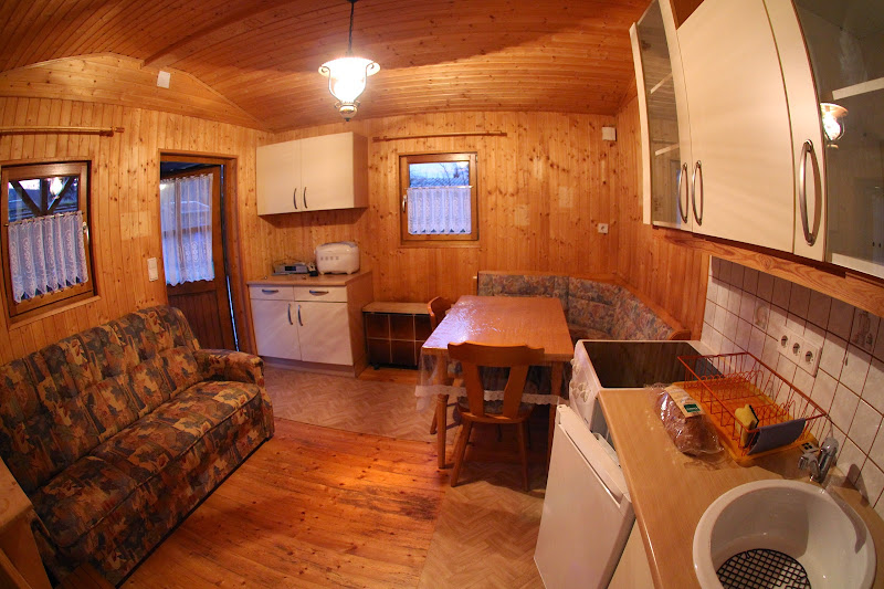 Das Sofa im Wohnraum werden wir durch ein anderes ersetzen, das Schlaffläche für zwei Personen bietet, damit wir auch in der Hütte übernachten oder Gäste beherbergen können.