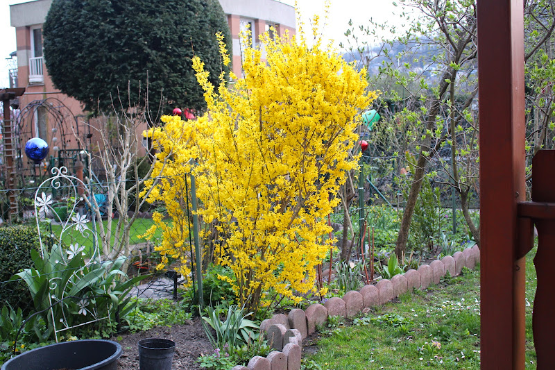 Im Regen hat die Forsythie besonders schön gestrahlt. Ein schöner Ausklang für einen arbeitsreichen Tag.